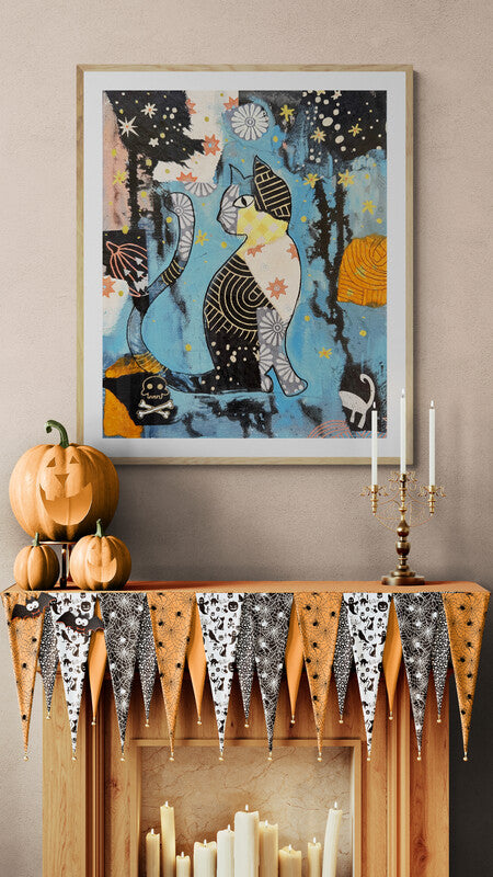 Halloween Cat Print art print by Tania Herrera. Our art prints are produced on acid-free papers using archival inks to guarantee that they last a lifetime without fading or loss of color. All art prints include a 1" white border around the image to allow for future framing and matting, if desired.