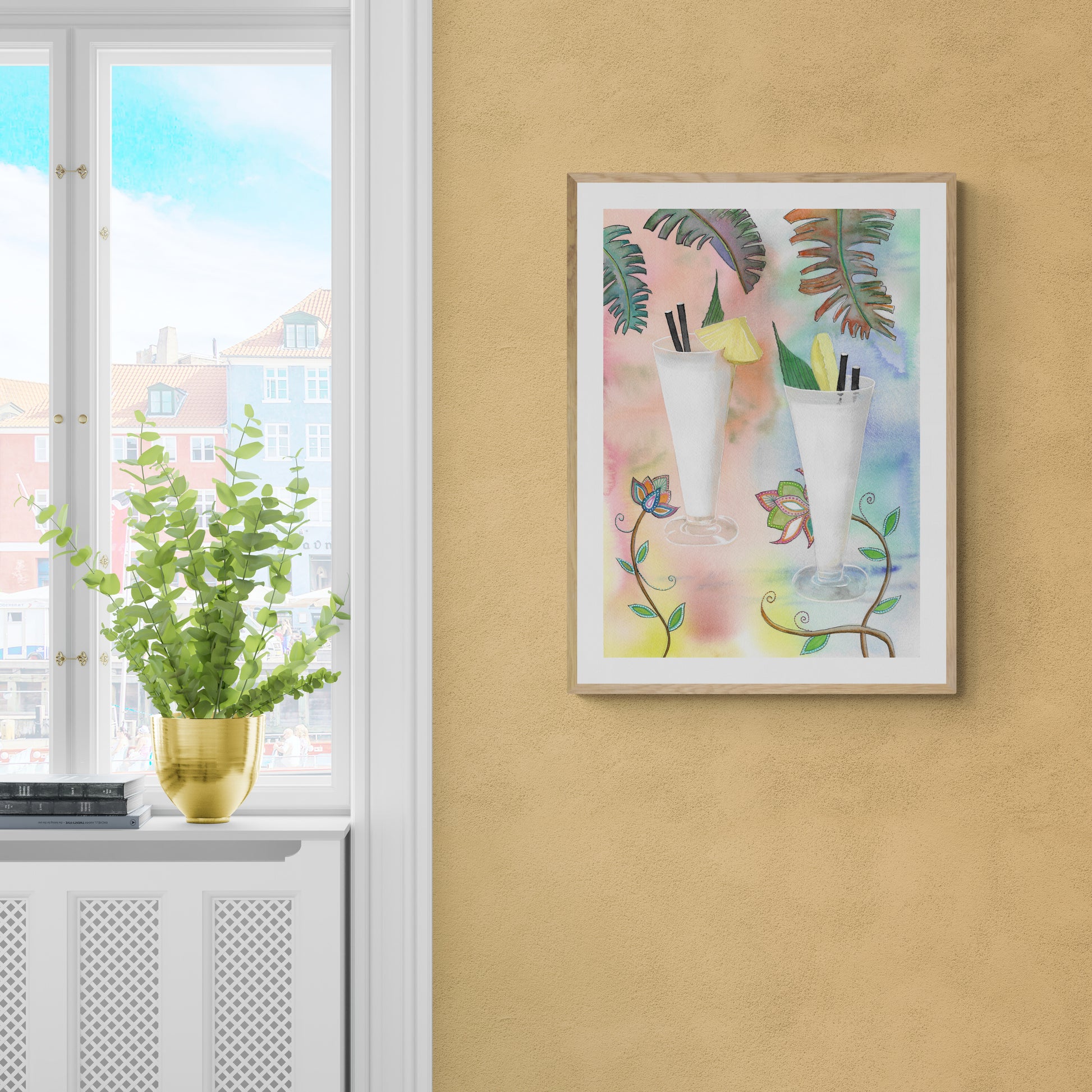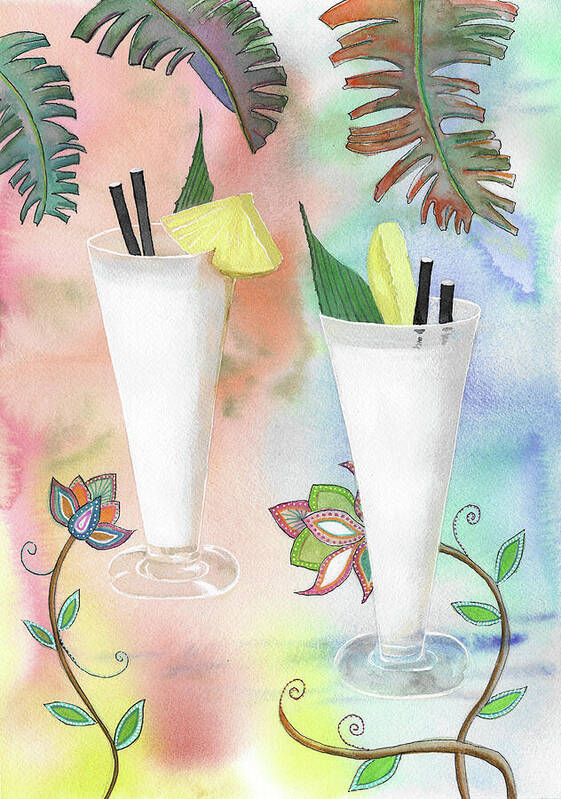 Pina Coladas art print by Tania Herrera. Our art prints are produced on acid-free papers using archival inks to guarantee that they last a lifetime without fading or loss of color. All art prints include a 1" white border around the image to allow for future framing and matting, if desired.